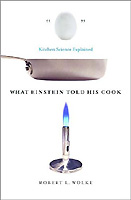 What Einstein Told His Cook: Kitchen Science Explained Robert L. Wolke Description From The Publisher: Einstein's cook was lucky. But you, too, can have a scientist in your kitchen: Robert L. Wolke. Does the alcohol really boil off when we cook with wine? Are smoked foods raw or cooked? Are green potatoes poisonous? With the reliability that only a scientist can provide, Robert L. Wolke provides plain-talk explanations of kitchen mysteries with a liberal seasoning of wit. A professor of chemistry and a lifelong gastronome, he has answered hundreds of questions about food and cooking in his syndicated Washington Post column, "Food 101." Organized into basic categories for easy reference, What Einstein Told His Cook contains more than 130 lucid explanations of kitchen phenomena involving starches and sugars, salts, fats, meats and fish, heat and cold, cooking equipment, and more. Along the way, Wolke debunks some widely held myths about foods and cooking. Whether kept in the kitchen or on the reference shelf, What Einstein Told His Cook will be a friendly scientist at your elbow. 20 illustrations. Reviews Wolke, longtime professor of chemistry and author of the Washington Post column Food 101, turns his hand to a Cecil Adams style compendium of questions and answers on food chemistry. Is there really a difference between supermarket and sea salt? How is sugar made? Should cooks avoid aluminum pans? Interspersed throughout Wolke's accessible and humorous answers to these and other mysteries are recipes demonstrating scientific principles. There is gravy that avoids lumps and grease; Portuguese Poached Meringue that demonstrates cream of tartar at work; and juicy Salt-Seared Burgers. Wolke is good at demystifying advertisers' half-truths, showing, for example, that sea salt is not necessarily better than regular salt for those watching sodium intake. While the book isn't encyclopedic, Wolke's topics run the gamut: one chapter tackles Those Mysterious Microwaves; elsewhere readers learn about the burning of alcohol and are privy to a rant on the U.S. measuring system. Sometimes the tone is hokey (The green color [in potatoes] is Mother Nature's Mr. Yuk sticker, warning us of poison) and parenthetical Techspeak explanations may seem condescending to those who remember high school science. However, Wolke tells it like it is. What does clarifying butter do, chemically? Answer: gets rid of everything but that delicious, artery-clogging, highly saturated butterfat. With its zest for the truth, this book will help cooks learn how to make more intelligent choices. —Publishers Weekly, Copyright 2002 Cahners Business Information, Inc.